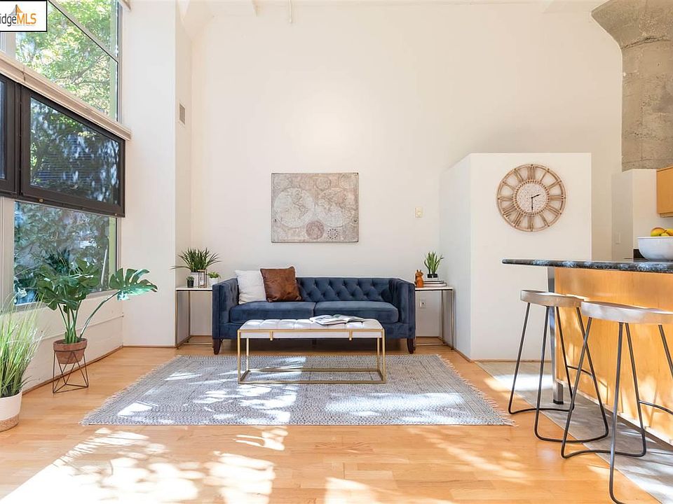 This famous Emeryville Warehouse live/work loft, designed by renowned architect David Baker, is located in the heart of Emeryville. This ground-level loft features an open floor plan with 14-foot high ceilings and unique industrial beams throughout. The expansive walls of windows illuminate the living-dining area and kitchen with specially installed window screens in there allow you to leave the windows open all day. The kitchen has granite countertops and a kitchen island, perfect to enjoy your meals. A few steps up leads you to the cozy loft bedroom and mezzanine, perfect for a cozy reading nook. Washer and dryer are conveniently tucked away in the closet. Only 2 blocks from AC Transit to San Francisco, Free Emery-Go-Round shuttle to BART and minutes from Pixar, Bay Street, Emeryville Public Market, Powell Street Shopping Center and only about 20 minutes to San Francisco.