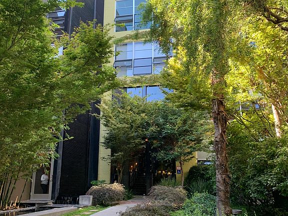 Cool Glassblock Loft - 2 Bedroom + Den 1 Bathroom Condo in Emeryville Waterfall courtyard entry with industrial steel and glass palatial doo entry Award winning Emeryville Warehouse Lofts by David Baker Architects Located on quiet tree lined block of Park Avenue Top level unit with high ceiling Upgraded loft with glassblock design spaces with curved wall Flexible space used as 2 bedrooms and office 3rd floor Garden View Wide hallway utilized simultaneously as office, library and collector's display Ample storage on mezzanine In unit washer and dryer Secured garage parking included. Same floor as unit. Great commuter location central to San Francisco, Berkeley and the East Bay. Ride the free Emery Go-Round to the BART Station and Emeryville's shopping malls. Meet at the waterfall to begin your tour of the Glassblock Loft at EWL. Water and trash included. One year lease term Sorry no pets, no smoking.