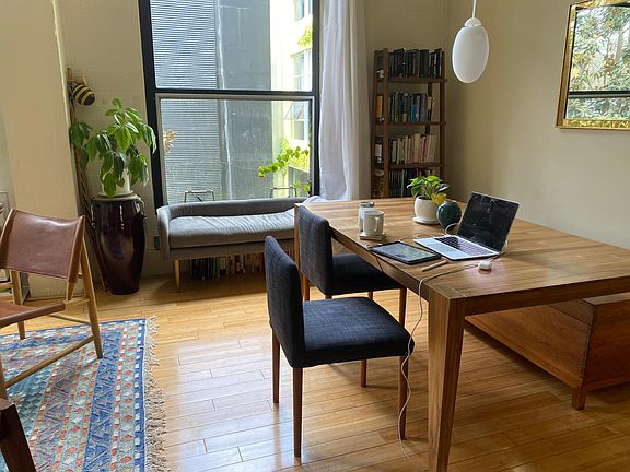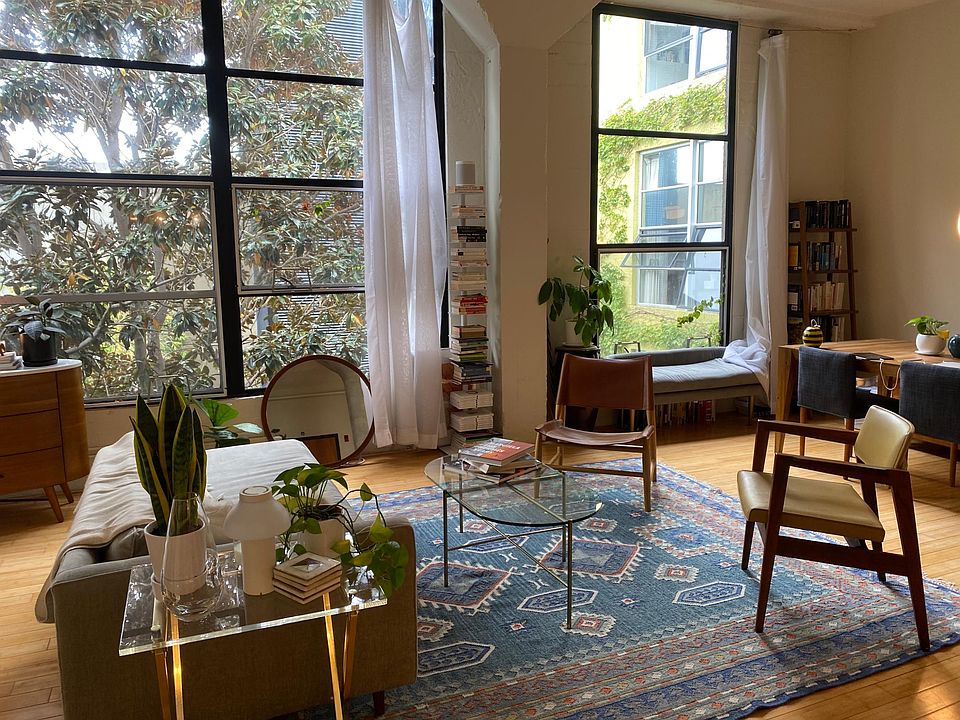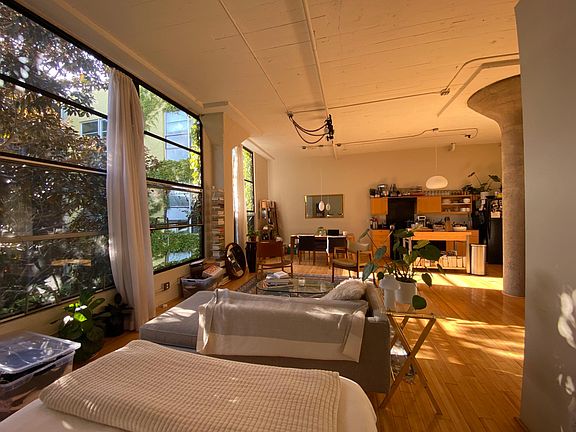 Beautiful converted loft designed by architect David Baker, in historic warehouse on Park Avenue in Emeryville. Third floor apartment with no upstairs neighbors, overlooking spectacular courtyard and 5 story high fountain. Floor to ceiling windows, vaulted ceiling, loft space for storage. Kitchen includes induction stove and full sized dishwasher; all appliances less than 2 years old. Includes covered garage parking for one vehicle, and has plenty of street parking. Communal roof top patio with views of Downtown Oakland and Bay Bridge. In-building laundry. Immaculately maintained with on-site property manager and staff present during normal business hours. Located in the heart of Emeryville and within walking distance to Bay Street shops and restaurants, Target, Home Depot, Best Buy, IKEA, Emeryville Public Market, and next door to the Emery, Emeryville's largest residential/commercial development slated to open fall of 2022. Easy, convenient access to the Bay Bridge, 580, and 880 freeways. Emery-Go-Round free shuttle to BART. - Tenant pays PG&E - Tenant pays internet - Owner pays trash - No smoking, please