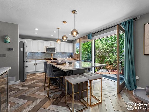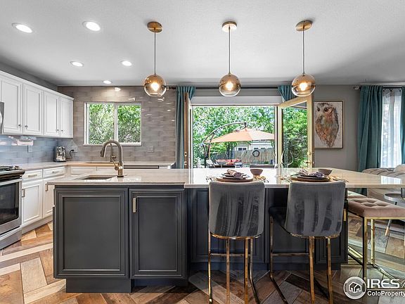 DON'T MISS THIS ONE - From the moment you arrive you'll be struck by the immaculate curb appeal, paver stone steps, lush landscaping, & charming covered front porch-perfect for sipping morning coffee. Step through the custom modern front door and into a thoughtfully renovated home featuring luxury herringbone tile flooring throughout the main level-a designer upgrade valued at over $40K inside, the heart of the home is the expansive kitchen with a stunning quartzite island & countertops $25K upgrade, ceiling-height tile backsplash, dry bar, custom cabinetry, & French doors opening to an entertainer's dream backyard. The nearly quarter-acre lot-the largest in the neighborhood-offers space for gardening, play, fireside gatherings, or simply relaxing in your private oasis. Just off the kitchen is a large, cozy family room featuring a sleek gas LED fireplace-perfect for snuggling up on cold Colorado nights with a movie and loved ones. The main level also includes a stylish 3/4 bathroom with custom tile & glass, a large coat closet, & a flexible office (which could be converted to a bedroom).Upstairs, the primary suite is spacious and bright with a spa-like en-suite bath, floor-to-ceiling tiled steam shower, dual vanities, and two custom closet systems. Two additional bedrooms and a versatile loft space (easily converted back to a 4th bedroom) complete the upper level, all closets have custom closet systems.The finished basement features another LED fireplace, a large rec room, and a second primary or guest suite with a massive walk-in closet and luxurious double vanity bath. It's the perfect summer retreat-cool, quiet, and private.Additional highlights include a 3-car garage, extra side yard storage, and a large outdoor shed. Every inch of this home has been updated with care and style-offering truly turnkey living in one of Longmont's most loved neighborhoods. Owner is a licensed real estate agent. Buyer to verify square footage; figures sourced from county records.