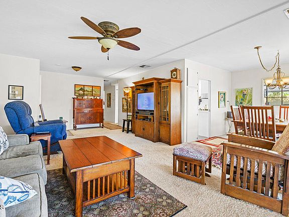 Exceptional stunning home comfortable lifestyle in this delightful 2-bedroom, 2-bath Santa Paula residence in The Oaks senior park (55t) Mobile home park. Beautiful landscaping borders the pathway leading to this single-story home's covered porch. Discover an inviting mfg., home approx. 1,344 sq ft. (per assessor's records) An abundance of natural light across the seamlessly flowing layout creates a welcoming atmosphere as you entertain in the living and dining areas. In the immaculate kitchen, prepare sumptuous dishes, ample cabinetry, and gleaming countertops.Enjoy serene repose within the two bedrooms, including the larger primary retreat featuring a large closet, an ensuite, and glass sliders to a personal office. Venture out to the backyard and hold memorable gatherings amidst breathtaking mountain views. Notables include the newer Heating and A/C system, newer water heater, laundry nook, attached carport, Park is for Seniors (55t) with clubhouse and pool. Santa Paula is nestled between Los Angeles and Santa Barbara and just 15 minutes the from Ventura County beaches!