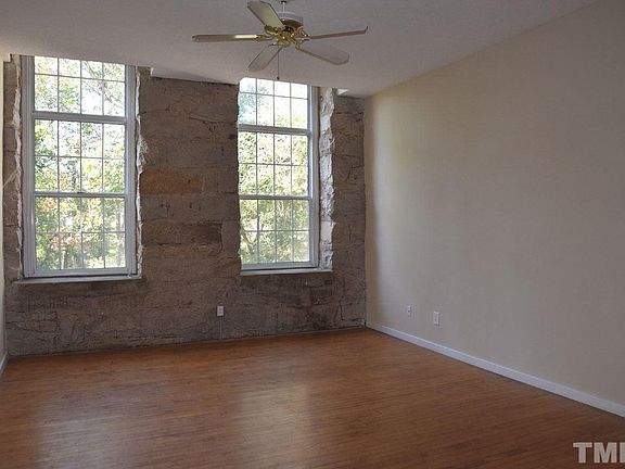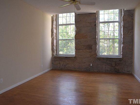 Available for immediate move in! 2nd floor waterfront condo in historically designated Mill on 23 park-like acres with 800' of water frontage along banks of the Neuse River. 9' tall windows and high ceilings enhance the open space of kitchen, living and dining areas. Maple hardwoods and 2' thick exposed granite walls mimic this natural setting. Enjoy the park-like grounds river side or from the gazebo and walking trails. Includes water and community laundry. 1 adult pet under 25 lbs with $300 pet fee.