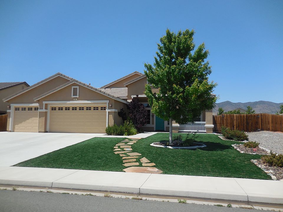 4 BD. 2 BA. 3 Car Garage. Mountain Views & Upgrades!! This sparkling floor plan features brilliant hardwood flooring and beautiful tile throughout. The spacious interior is highlighted by 10 ft. ceilings, archways, ceiling fans, designer paint and rich cherry wood cabinets. Generous cabinets and double sinks in both bathrooms are tastefully tiled while granite accents the kitchen counter tops. The formal dining room is perfect for entertaining with large windows, lovely views, and impressive Tuscany lighting. The 22 ft. x 36 ft. patio deck has an Alumawood cover and overlooks exotic flowers, fruit trees, evergreens... and all on auto drip for low maintenance. This lovely home also includes a 50+ yr. Concrete Tile Roof. And the 3-Car Garage is taped textured and painted!! There is ample RV Parking along with a convenient dedicated electrical supply service pedestal included. Phone owner direct for showing (775) 848-0055 John...