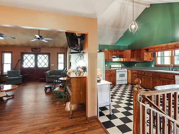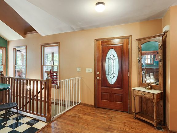 Looking for a home that sits right in the middle of 10 acres?? This is it!! So very very private. This custom built home with 2 car detached garage and one garage in basement. Wrap around porch. New carpet in bedrooms and hardwood floors throughout.