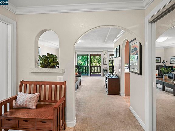 Experience unparalleled craftsmanship in this Toupin remodel, offering breathtaking hill views and exceptional upgrades throughout. The home boasts custom cabinetry, coffered ceilings, recessed lighting, and elegant arched doorways—a true testament to meticulous design. The bathroom is a haven of comfort, featuring a spacious walk-in shower with a built-in bench and the convenience of an in-unit stacked washer and dryer. Step outside onto the expansive wrap-around deck, perfect for entertaining or relaxing while enjoying the serene surroundings. Located just moments from the main clubhouse, this home is your gateway to all that Rossmoor offers. Enjoy access to two golf courses, a state-of-the-art theater, dining options, and studios for woodworking, lapidary, ceramics, art, and sewing. For sports enthusiasts, indulge in tennis and bocce ball courts. The seller has relocated to Southern California and is extremely motivated to sell. At $449,00 this stunning home won't last long.