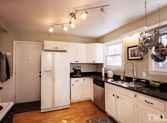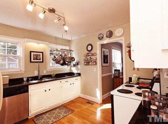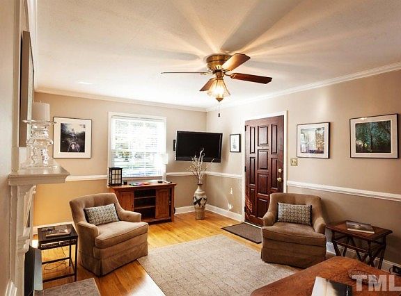 Delightful bright home with separate studio in Trinity Park! Large windows and hardwoods throughout w/ carpet in study that leads into large master bed/bath. Updated (2011) bathrooms, granite counter tops in kitchen, (2013) HVAC and water heater. Beautifully landscaped lg corner lot w/established flowering shrubs. Driveway and carport behind home. Darkroom in full basement. Studio is heated/cooled w/large windows and separate driveway. Walking zone for Club Blvd. Humanities Elementary. A jewel!