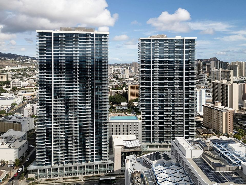 Experience modern urban living in this brand-new, never-lived-in 2 bedroom/2 bath residence with 2 parking stalls at The Park on Keeaumoku. This thoughtfully designed home features floor-to-ceiling windows, luxury vinyl plank flooring in living room, split A/C, washer/dryer, and a private lanai with city views. Residents enjoy resort-style amenities including an infinity pool & spa, BBQ pavilions, fitness center, yoga studio, sauna, theater, and stylish clubrooms. Conveniently located near Ala Moana Shopping Center, Sam's Club, Walmart, and restaurants. Tenant is responsible for electricity and must provide renters insurance. Service and emotional support animals must be disclosed with the application. No pets, no smoking.