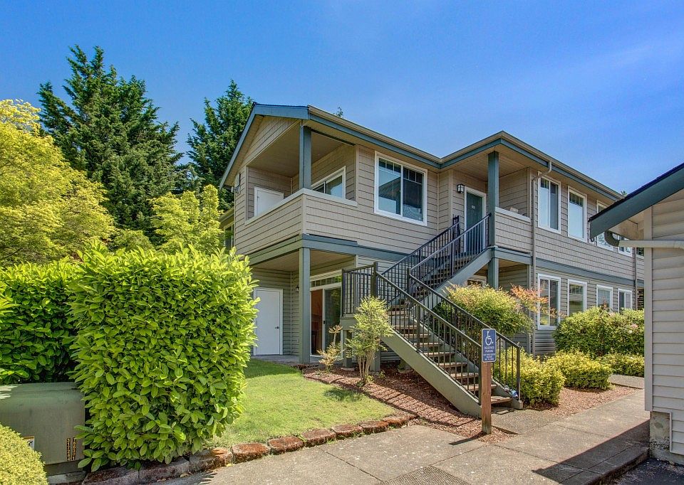 Pristine 3bd 1.75ba ground-floor,end unit, w/garage in gated Steeple Chase Hill community! Newer carpet, soaring 9ft ceilings, kitchen w/bfast bar, ample counter & cupboard space. Living rm is warmed by a gas fp w/slider to 1 of 2 patios. All 3bdrms are generous in size & master suite w/private patio, 2 closets, vanity w/dbl sinks & oversized shower. All this & an addtl parking permit, no steps, ADA Accessible, new H2O heater, clubhouse w/game rm & gym. Well managed HOA - FHA Apprd!