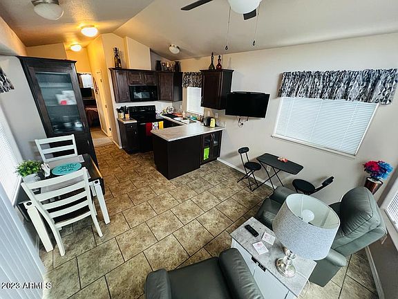 Charming park model just waiting for someone to call it home! Cathedral ceilings create an open feel to this one bedroom beauty. The kitchen boasts beautiful dark cabinets with light backsplash and granite look laminate countertops. Water included in monthly lot fee. Great friendly community with Rec Room with pool tables and TV. 24 hr Laundromat, fully equipped workout room and heated pool. Part time residence receives a monthly discount during summer months for the lot fee. Beds/Baths: 1 / 1,Bedrooms Plus: 1,Approx SqFt: 400 / County Assessor,Price/SqFt: $162.5,Year Built: 2019,Flood Zone: Community Pool,Exterior Stories: 1, # of Interior Levels: 1, Dwelling Type: Park Model, Land Lease Fee Y/N: Y / $500 Monthly. Water, sewage, trash, and internet are in included in the lot