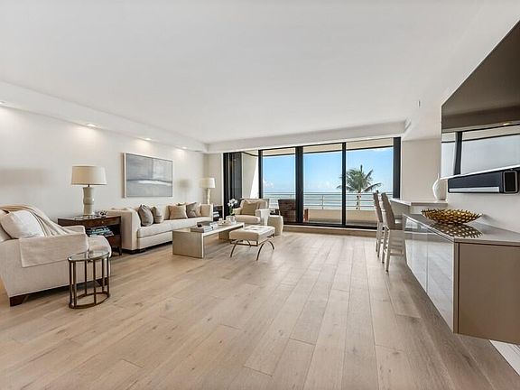 From the moment you step into S-203 you'll be dazzled by the forever ocean views & beach home feel. This 2 bedroom, 2.5 bath oceanfront unit has been renovated with the most luxurious appointments...wine bar, custom lighting, and remote control window treatments. The kitchen features a double wall oven, Thermador Induction stovetop, SubZero refrigerator & quartz counters with waterfall edges. There's stunning European white oak flooring in the common areas & plush carpeting in the bedroom suites. The bedroom suites feature a walk-in closet & ensuite bath. The fabulous bathrooms include marble flooring & sleek cabinetry. The water heater is newer, both a/c units are just 3 years young and the a/c duct-work is new. S-203 is an oceanfront paradise. The Addison On The Ocean is an exclusive oceanfront condominium on the sparkling shore of Boca Raton, Florida. This opulent condominium offers resort-style living for just 169 luxurious residences. Each residence features immense square footage and panoramic vistas of the turquoise Atlantic ocean. The Addison On The Ocean welcomes you with dramatic porte-cochere entries with stunning water features, designer landscaping and premier valet service.