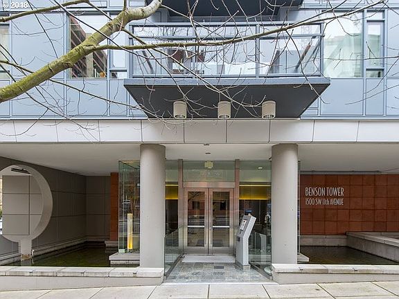 Sleek & stylish 1 bed/1 bath Benson condo w/ sweeping city views in the heart of Portland's Cultural District! Lightly lived-in unit w/ gleaming floors, stainless appliances, quartz counters, tons of windows & light. Many extras - party room, courtyard, gym, hot tub, garage parking, ample storage. Walk to restaurants, coffee, farmer's market, museums, theaters, grocery, streetcar, bus, MAX. Well-managed bldg/HOA. This home has it all!