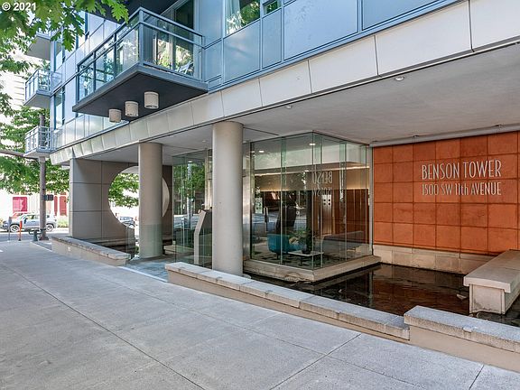 Enjoy sweeping views of the city and the west hills from this corner unit on the 15th floor of the beautiful Benson Towers!Loads of natural light from many oversized windows enhanced by the corner location.Kitchen offers stainless steel appliances,cherry cabinets,gas cooking,quartz counters/island.You will love the private balcony,perfect for cocktails and dining al fresco overlooking the hills.Deeded parking/storage,you are steps away from the street car, museums, farmers market,outdoor dining!