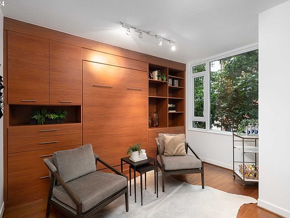 Contemporary west-facing condo nestled in the trees in the Cultural District. This bright condo features hardwood floors, elegant cherry cabinets, fresh paint, a private balcony, and deeded parking. The unit offers a versatile layout with a Murphy bed and two true full bathrooms. With the Streetcar at your front door and a Walkscore of 98, you’re just steps away from PSU, the Farmer’s Market, the Portland Art Museum, OHSU, restaurants, and shopping! Easy freeway access to Nike and Intel! Rental cap not met. Outstanding HOA!
