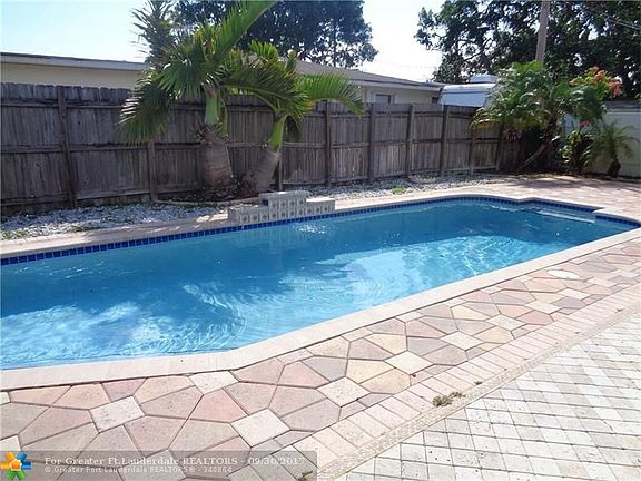 Fabulous corner lot pool home in Pompano! This 3 bed, 2 bath home has 20" diagonal tile throughout, a/c 1 year old, water heater 3 yrs and also has a water filtration system & all new allergy proof insulation under the roof. This home has a lovely paved and fenced back yard with a lap pool with waterfall, along with a paved circular driveway in the front. Close to beaches, US1, shops, restaurants...many you can walk to.