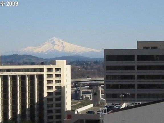 The perfect Mt.Hood and river views! New granite counters! Great amenities incl 24 hr security desk staff. Fabulous location near PSU, Waterfront Park and downtown. Streetcar and light rail access outside your door. Outdoor pool, gym, hobby shop, party room etc. Tandem parking can be traded for single spot - very valuable.