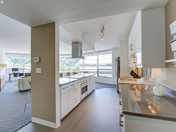 Modern 14th Floor Remodel in Portland Plaza. Sweeping city and west hills views from a wall of windows. New custom gourmet kitchen with extensive pull out drawers, quartz tops, updated appliances. Both bathrooms renovated. Don't miss the extensive storage added to this unit. Incredible built-ins added to both bedrooms, hall closets, and bathrooms! Garage spot. HOA includes renovated common areas, the pool, gym, concierge desk and more.