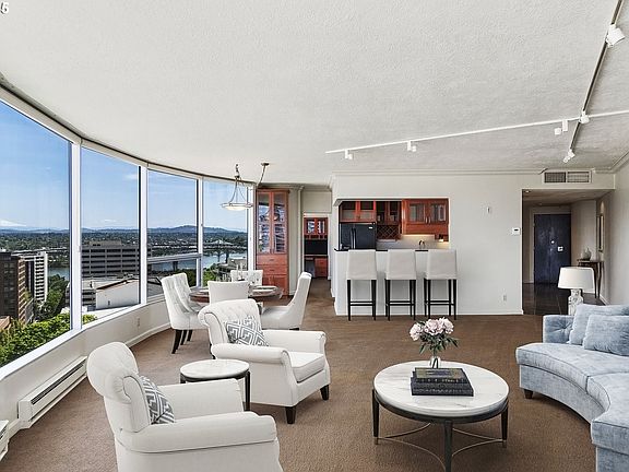 Prepare to fall in love with this ultra RARE REMODELED 3-bedroom condo. The most incredible 270 degree MOUNTAIN and RIVER views from Portland's Iconic 1970s Retro-Modern High-rise. These views will take your breath away. Unit has tandem 2 parking spots, and tons of storage. Surrounded by the city's most beautiful parks and landscaping; you will love being in the center of it all. "Portland Plaza" and the amenities covers a whole city block. Portland's best full service package: 24hr concierge, pool, fire pits, BBQ's, herb gardens, gym, library & new lobby. Lobby and Common areas were designed by Portland renowned architect and personality Fritz Junker. Well-managed association boasts ample reserves + $10M recent modernization. Low Taxes, Awesome Location, this unit has it all. This home is turn-key and ready for your to enjoy.