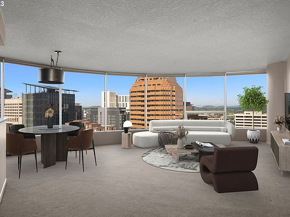 Prepare to fall in love with this ultra RARE fully REMODELED 1-bedroom condo. The most incredible MOUNTAIN and RIVER views from Portland's Iconic 1970s Retro-Modern High-rise. These views will take your breath away. Surrounded by the city's most beautiful parks and landscaping; you will love being in the center of it all. "Portland Plaza" and the amenities covers a whole city block. Portland's best full service package: 24hr concierge, pool, fire pits, BBQ's, herb gardens, gym, library & new lobby. Lobby and Common areas were designed by Portland renowned architect and personality Fritz Junker. Well-managed association boasts ample reserves + $10M recent modernization. Low Taxes, Awesome Location, this unit has it all. This home is turn-key and ready for your to enjoy.