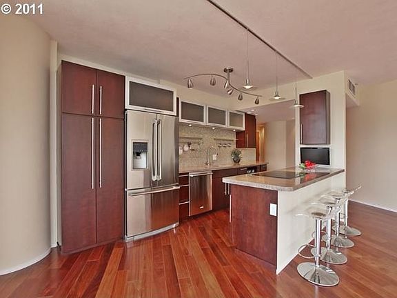 Don't miss an opportunity to buy a completely updated contemporary on the coveted west-facing side of the Portland Plaza! With breathtaking views of the West Hills from almost every room, the upgrades found throughout this unit exemplify quality and luxury. The main living area features brand new mahogany floors and opens dramatically to a gourmet kitchen with custom cabinetry, concrete countertops, and even a built-in wine cooler! The spectacular Portland Plaza features many resident amenities, including: a 24-hour front desk coverage, a renovated lobby and library, and a community pool!