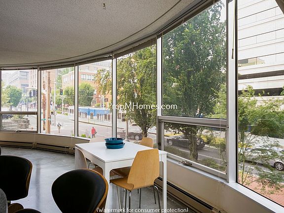 Please visit PropMhomes.com to schedule a showing. _ Neighborhood: The Prestigious Portland Plaza sits in the heart of Portland's Cultural District. A haven in the heart of the city, with all of the high end amenities you are seeking including 24/7 On Site security. Conveniently located on the MAX line and nestled between the World-renowned Keller Fountain, PSU and the exciting theater/museum district. Close proximity to Shopping, Restaurants, Entertainment and more. Walk to Pioneer Square for some high end retail shopping! Nearby parks include Keller Fountain Park, Chapman Square and Pettygrove City Park. _ Living Area: This unit is an incredibly spacious 1,050 square foot one bedroom/one bathroom condo on the second floor of the iconic Portland Plaza. The space features 10ft ceilings, polished concrete floors throughout, and stylish curved wall of panoramic floor-to-ceiling windows that are unique to this unit. Double Murphy wall bed with privacy curtain! Closets galore, including a large walk-in (large enough to be a small home office). _ Kitchen: Large open galley kitchen including a dishwasher, garbage disposal, microwave, electric range and refrigerator. _ Bedrooms/Baths: One bedroom, one bathroom. Bathroom features shower/tub combo, walk-in closet, and dual sink vanity. _ Exterior/ Parking: An assigned secured parking spot in the building garage. New multi million dollar renovation of the exterior park like setting. _ Transportation: Walker's Paradise - Walk Score 98 Rider's Paradise - Transit Score 97 Biker's Paradise - Bike Score 92. _ Walk to the max and the Portland Streetcar - B Loop and the Portland Streetcar - NS Line at the SW 5th & Market stop. _ Association Amenities: Salt water swimming pool, sauna, two barbecue and patio areas, meditation garden, herb and flower garden, complete gym, the book and movie library, party room available for rent, 24hour security team, activities like happy hour and holiday parties. _ Special Terms: $125 HOA move in/ move out fee. _ Available starting 10/15/2019 for a 3, 6, 9, 10, or 12 month lease. No option to extend on any lease term. We are the premier Oregon Property Management Company. _ Rental Criteria: Please visit our website at PropMhomes.com to review our rental criteria. _ Included in The Rent: Electric and Cable/Internet maintained by owner. Garbage, Water/Sewer, Landscaping, and Pool Maintenance maintained by HOA. Recycling on each floor. _ Washer/Dryer: Stackable washer and dryer. _ Heating Source: Heat Pump Cooling Source: Central _ Furnished: Yes with housewares and tv. _ Pets: No, sorry this home is not pet friendly. _ Elementary School: Chapman Middle School: West Sylvan High School: Lincoln _ Disclaimer: All information, regardless of source, is not guaranteed and should be independently verified.