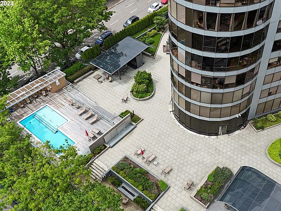 SELLER TO PAY FIRST 6 MONTHS HOA DUES! Discover unparalleled urban living at the prestigious Portland Plaza, nestled in the dynamic Arts & Cultural District. This spacious one-bedroom condo features a renovated bathroom, new luxury vinyl flooring, new quartz countertops, and a fresh coat of paint. The unit has panoramic windows in the living area that overlook the park, offering views of trees and the pool. Low HOA dues and deeded parking add to the appeal. Nestled in the heart of downtown Portland, this condo is part of a sleek high-rise tower, providing urban luxury and convenience. The interior is filled with natural light, creating a bright and welcoming atmosphere. The recently updated lobby houses a 24/7 concierge, gym, library, and meeting area. The private outdoor area includes a large patio with barbecues and a pool, ideal for socializing or relaxing. The light rail provides easy access to the city, while nearby universities, theaters, art venues, and restaurants offer endless cultural experiences.