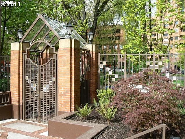 4th floor penthouse level condo with an incredible location (walk score 99) near PSU, Oregon Symphony, Art Museum. Saturday Farmers Market, Grocery Chain and Street Car...you might not ever need to own a car again! Gated community with gym, spa, courtyard w/water feature,& 5th floor community patio! Easy living for part-time or full-time resident. In unit laundry, all appliances and deeded parking included. Unit # in light above door.
