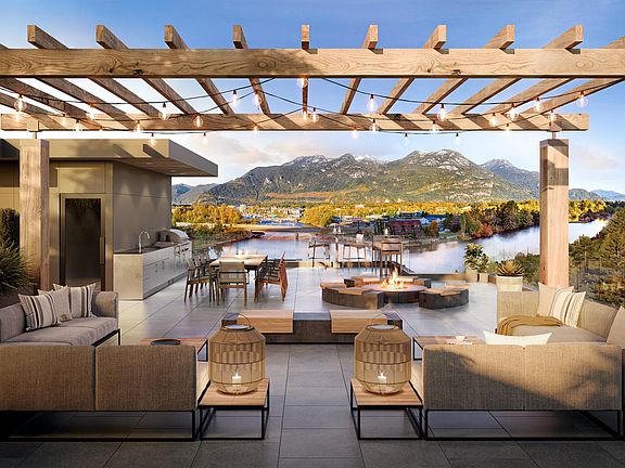Spectacular 2 Bed + 2.5 Bath Villa home at Redbridge by Kingswood Properties, a new master-planned community in Squamish, actively designed to live well. This home is part of our limited collection of waterfront Villas, offering stunning water views of the Mamquam Blind Channel. The custom-designed Italian kitchen offers chef-inspired appliances and a full-depth pull-out pantry to maximize storage. The spacious patio overlooking the water is a true extension of your living space, equipped with gas BBQ outlet, hose bib and lighting. Enjoy direct access to underground parking with 2 parking stalls. This Villa home comes with 1 oversized storage room. Redbridge offers 20,000+ sq. ft. of resort-style amenities, includinBook an appointment and see why over 275 homes sold at Redbridge in 7 days!