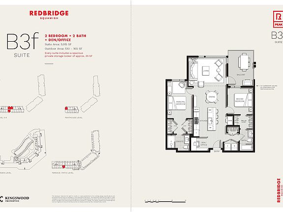 Remarkable 2 Bed + Den with 2 Bath home at Redbridge by Kingswood Properties, a waterfront master-planned community located steps from Downtown Squamish. The meticulously designed, spacious layout supports relaxed, modern living with expansive windows to maximize views of the Mamquam Blind Channel and Tantalus Mountain Range. Enjoy the quality Italian-made kitchen custom designed by Inform, semi-enclosed office or den space, spacious 130 sq. ft. outdoor patio, and convenient side-by-side washer and dryer. Access extensive resort-style amenities at Base Camp, including outdoor plunge pools, co-working spaces, and Sunset Terrace. Book an appointment and see why over 275 homes sold at Redbridge in 7 days!