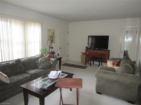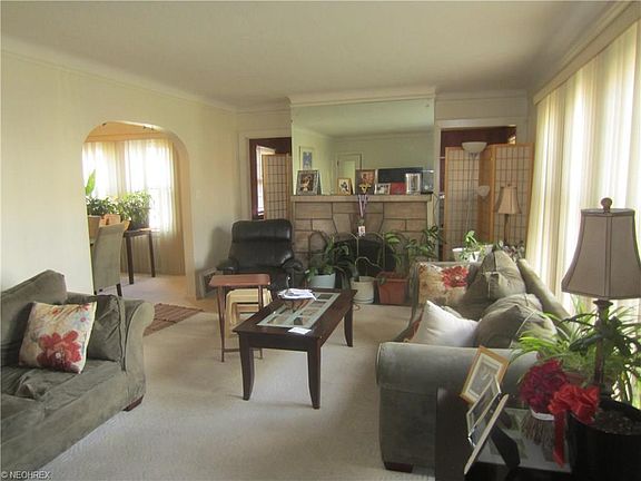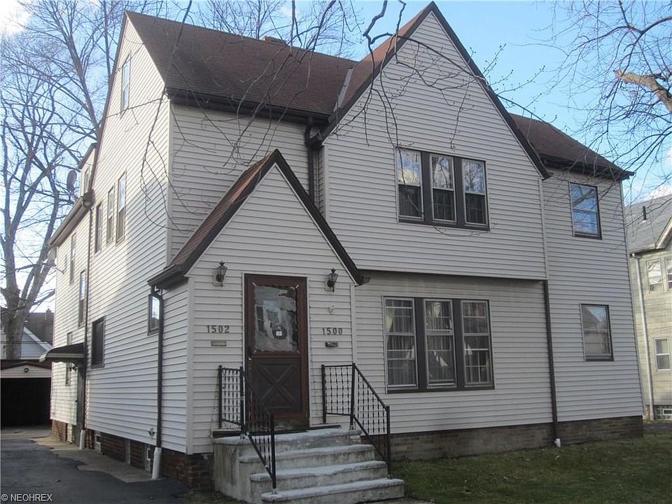 Vinyl sided up and down South Euclid two family. Fully rented- one unit $750 and the other $730. Pretty interior- Living Room with fireplace, hardwood floors, small extra room off LR. Convenient location.