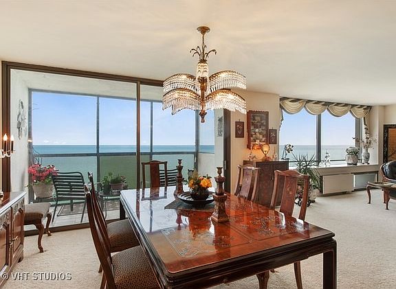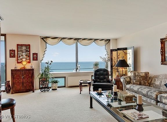 Absolutely breathtaking views of Lake Michigan await you in this spacious 2 bedroom 2 bath condo. Resort like living with outdoor pool, party room and exercise room. The large living and dining rooms extends to the glassed and screened-in balcony that enhances your daily lake views. Unit has laundry hook up, walk-in pantry off the foyer and a gorgeous kitchen that has been fully remodeled with white shaker cabinets, glass backsplash, quartz countertops and porcelain tile floors. Condo has closets galore and additional storage in the basement. This unit includes 1 indoor heated parking spot plus 1 outdoor spot. Steps away from Plaza Del Lago. Enjoy all the amenities, leave your worries behind, and let the 24-hour doorman handle everything. You deserve it!