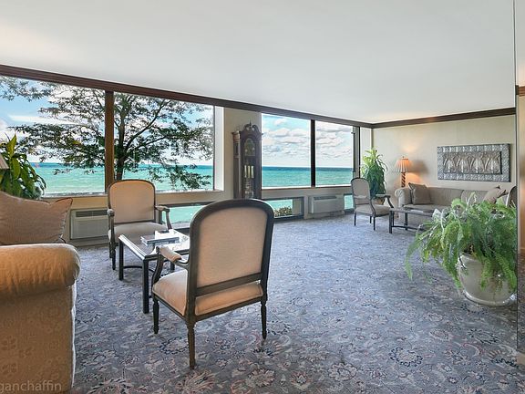 Stunning Lake Views! Spacious 2 bedroom 2 bath condominium at desirable 1500 Sheridan . This unit features a white eat-in kitchen, living room and dining room with a glass balcony overlooking beautiful Lake Michigan with large floor to ceiling windows that bring in lots of natural sunlight. New A/C unit for main floor and master bedroom. Master bedroom with en suite bathroom and second bedroom and bath with laundry hookup. Wonderful amenities including pool, party room with kitchen, fitness center, doorman, and heated garage. A+ location! Walk to Plaza del Lago across the street, shopping and dining.