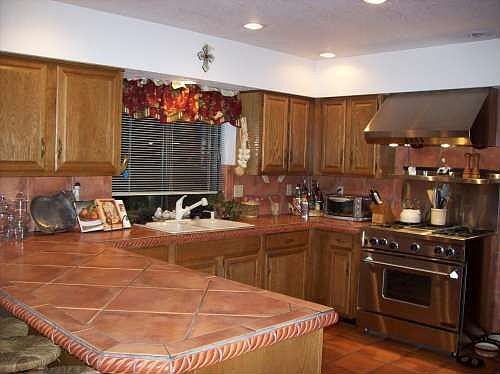 Wickenburg Country Club home on 8 acres overlooking the driving range with a private drive. This is a classic spanish style home with a upgraded gourmet kitchen, saltio tile floors and countertops, walk in pantry, laundry/mud room. There is a formal dining room, beautiful fireplace and upgraded doors to the lovely patios. The outdoor living is a bonus with flagstone patio, custom waterfall overlooking the driving range, private courtyard entrance and mature landscaping. The detached shop allows you unlimited options, RV Parking and room for the horses. This is a rare find in Wickenburg, call for your personal tour today.