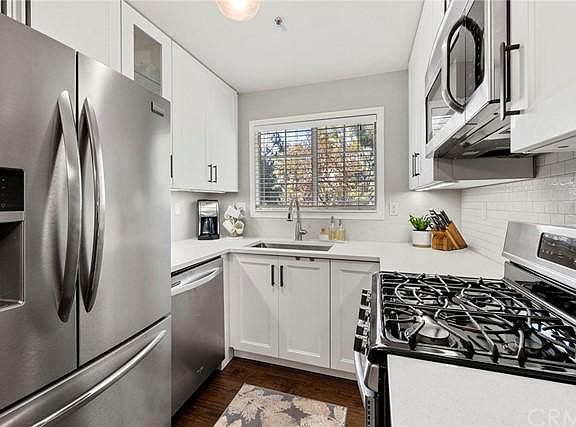 Welcome to 1500 Spruce! You will just fall in love with this charming 2-bedroom 2-bathroom condominium in the quiet town of Placentia. When you enter this home, you will be greeted by a bright an airy floor plan. The large living room has a large window that allows great natural light, and the dining room area is great for entertaining. The updated kitchen has shaker style cabinets, quarts counters and stainless-steel appliances. The primary bedroom is spacious, with a large closet, and private bathroom that has been remodeled. The secondary bedroom is also spacious and hall bathroom has great storage and updated. If you like the ideas, you see on Pinterest you will love this home. This home also features: Nest wifi system, updated water heater, garage door, HVAC, wood laminate flooring, a one car garage with private laundry area with lots of storage. The community has a pool, spa, conveniently located to shopping centers, schools are Van Buren Elementary, Kraemer Middle School and Valencia High School.