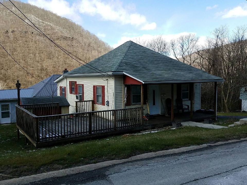 Bedrooms and living room have carpet, Kitchen has linoleum, and bathroom has tile. Gas furnace. Washer and dryer in the basement. House comes with refrigerator, stove, washer and dryer. Small outside building. Front porch and side deck. All rooms have sheet rock except one bedroom has paneling. Bedroom 2 pictures upon request, currently using as a storage room.