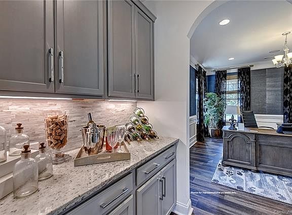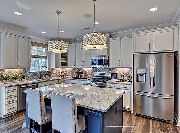 Enter this welcoming home to a heavily molding foyer with formal dining room featuring butler's pantry and beautiful archways throughout. Open kitchen with large island features white cabinets with gray accent island, white quartz countertops, stainless steel gas appliances, island and gray subway tile backsplash. Kitchen and breakfast opens to the family room which features a coffered ceiling. Upstairs has a bonus room with a closet great for movie night! Owners suite features a cathedral ceiling, large shower with tile shower pan, upgraded tile and an over-sized walk in closet. Schedule an appointment today, this immaculate home will not last long. Square footage based on blueprints and plans.