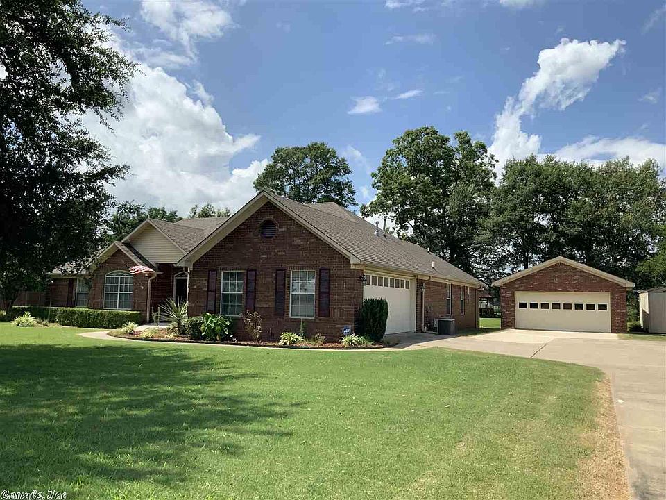 AWESOME BRICK HOME ON MOUND LAKE: This is a well maintained 4br,2.5 BA home w/ a split bedroom plan. Eat-in kit has a breakfast bar, pantry,painted cabinets & a apls pantry. Master suite has a jetted tub,sep shower dbl closets,dbl sink vanity. Sep dining rm, office/seating area. Hardwoods in the dining rm,Liv rm,bedroom & hallway. UPDATES : HWH, floating dock,22x22 shop w/210 &110. Tool shed w/electrity,beach light,cobblestone fire pit,bird house. Gazebo to sit and enjoy the beautiful lake views.