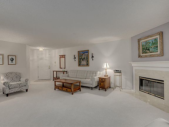 No Steps—Anywhere! Enjoy effortless, step-free living in this immaculate two-bedroom, two-bath condo with an inviting covered deck—perfect for your morning coffee or breathtaking sunsets. Inside, you'll find brand-new carpeting throughout, a cozy wood-burning fireplace, and a spacious layout designed for comfort. The attached garage is a standout, featuring custom cabinetry, RaceDeck's Patented Garage Tile System, and a loft for exceptional storage. This is truly a rare find! Conveniently located just minutes from the pool, clubhouse, NKU, Kroger, and all your shopping needs.