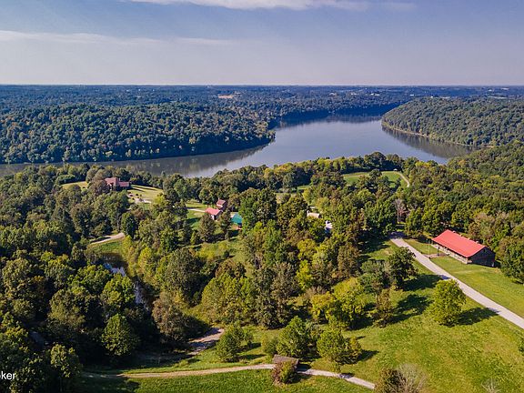 LAKEFRONT PROPERTY • Approx. 63 ACRES • HUNTERS' DELIGHT • ARTISTS' HAVEN • NATURE LOVERS' SANCTUARY • CAMPING VILLAGE. Van Buren Village, perched above Taylorsville Lake, showcases 7 log cabins, 3 log barns (all hand-hewn, originally erected in Kentucky from the 1800s), 4 ponds each with its own spillway and carefully engineered covered bridge, gazebos, a 40'x90' 2-story 'Country Store' commercially constructed with 2 public-designed restrooms and a full basement. 2 miles of gravel road lead to all facilities on this extremely private hunting/fishing/camping lodge-like Village on Taylorsville Lake with commanding views. A private hideaway (owned by same family since the 1970's) for those who seek the finest in craftsmanship and adventure. A welcome lifestyle of living with wonderful entertaining space. An easy 45 minute drive from Louisville or Lexington. Certainly, a one-of-a-kind private getaway with the main house consisting of Geothermal energy, 3 bedrooms, 3+ bathrooms (appx 4000 Sq ft), and an unfinished walkout lower level (appx 2000 Sq ft). Brazilian cherry hardwood flooring with wood inlays in the great room and dining area. Tile flooring with inlays in the entry, hallways, kitchen and bathrooms. Anaglypta paper in ceilings in the entry and bedrooms. An absolutely stunning and picturesque retreat. The photos only begin to tell the story.