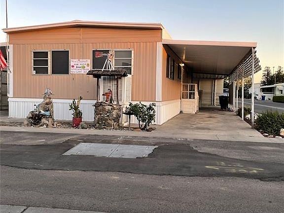 This mobile home is situated on a corner lot in the highly desired Arabian Village Senior Park in Clovis.Walking distance to shopping and conveniences adds to the great location.Another bonus is that being in a corner space offers two covered carports!There are 3 bedrooms and two baths. The huge living room sports many windowsto allow the light to come into the room. The covered front porch is spacious with plenty ofsitting space.This move in ready mobile home won't last long.