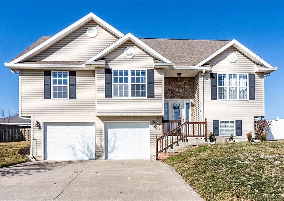 This pristine home sits in the wonderful Huntington Estates neighborhood, a few minutes to US 50 Hwy for commuting and less than 10 min to Whiteman AFB. Sellers have maintained the home so well! The main level Living Room is inviting with the fireplace and access to the back deck that has had new deck flooring and stain in 2022. Easy care laminate flooring runs throughout the main spaces. Your Kitchen and Dining Room work together well with all stainless-steel appliances staying with the home including refrigerator. Beautiful stained cabinetry is complemented by new granite countertops. The hallway leads to the main level hall Bathroom, 2 nicely sized secondary Bedrooms with good sized closets, and the Laundry closet at the end of the hallway. The large Primary Bedroom is right nearby with not one, but TWO walk-in closets! The on-suite Bathroom is also spacious with double vanity sinks, soaking tub, and separate shower. Head downstairs to the lower level Family Room for games, TV time, etc. There are two more Bedrooms down the hall (sellers added a closet to make one a legal Bedroom) with an on-suite full Bathroom in one Bedroom. Water heater is new as of fall 2023. The garage is large enough for vehicles and storage. Your fenced backyard is an oasis for play and relaxation or hang out on the deck to grill or have your favorite drink. Don't miss the opportunity to call this clean, spacious, well-kept home yours!