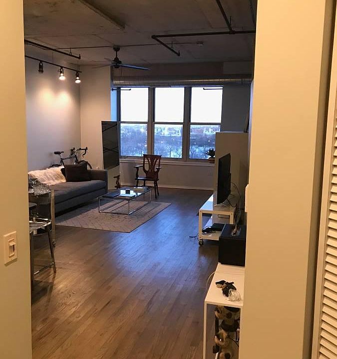 1 Bedroom, 1 bathroom plus den for additional sleeping area or office/workout area in highly desirable West Loop area 3 blocks from United Center and 3 blocks from Randolph. Secure building, doorman, 1 parking space, brand new washer + dryer, new wood floors.