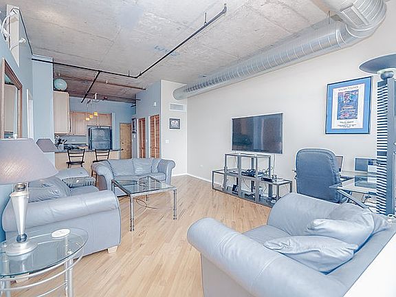 Move right in to this incredibly bright 1 bed/ 1 bath loft-style unit with unobstructed views of the city. Spacious living room w/ 11' ft ceilings, open floor plan & tons of natural sunlight. Upgraded kitchen w/ granite counters & 42' maple cabinets. Hardwood flrs, balcony & huge bedroom & bath. W/D in unit, Doorman, and 1 pkg space included. Awesome location, near CTA Green Line-Lake/Ashland stop. Available Oct 1st.