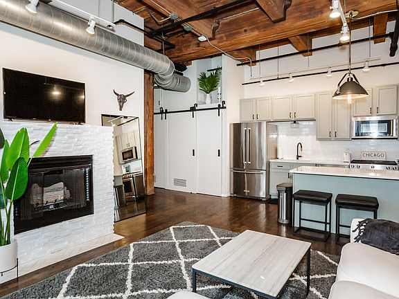 Beautifully updated 2 bedroom / 1 bathroom timber loft condo located in prime West Loop just steps from both Skinner Park and Union Park! This south-facing unit gets TONS of sunlight at all hours of the day and boasts 12' ceilings with an open floor plan and gorgeous southeast Chicago skyline views from the balcony overlooking Skinner Park! Hardwood floors run throughout and the kitchen features stunning finishes including quartz countertops, stainless steel appliances, and a large breakfast island. The spacious living room has a gas fireplace to curl up next to during the snowy winter nights in Chicago! A wall of windows lets abundant natural light into the primary bedroom which includes a custom Elfa closet system and additional storage space. The en-suite bathroom features a new vanity, shower/tub and heated floors! The bathroom is also accessible from the hallway. The 2nd bedroom is perfect for a home office setup and/or guest bedroom. All appliances, furnace, and humidifier are approximately 5 years old - nothing to do but move in! In-unit laundry also included. One extra large garage parking space is additional $25k and features an additional storage locker on the wall above the parking spot. Great building with door staff and package receiving. Close to everything the West Loop has to offer - steps from 2 parks and a dog park, Madison street's shops and restaurants, Restaurant Row on Randolph Street and the Fulton Market District. Easy access to plenty of public transportation options including the CTA and I90/94 expressway. Schedule a showing today!