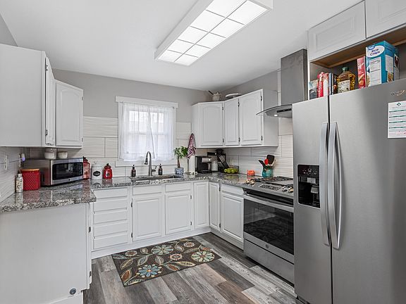 Charming 3 Bed, 1 Bath Home with endearing curb appeal. This adorable residence is 'cute as a button,' featuring a large welcoming front porch and a classic white picket fence. The updated kitchen is a highlight, boasting granite countertops, a tiled backsplash, stainless steel appliances, and ample storage. A custom spiral staircase leads to a spacious loft bedroom upstairs, while downstairs offers two bedrooms and a full bath. The property is fully fenced and situated on a corner lot, adding a touch of privacy to this delightful home.