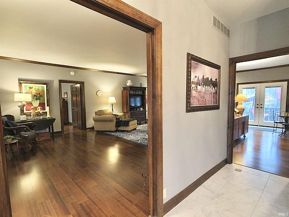 Impeccable multi-year renovation of the jewel of Warrick County's Washington Avenue left nary a stone unturned. Sitting atop a 3/4 acre site that stretches from Washington Ave with loop drive to the front, clear to Wilson St with a separate driveway to the rear, the home is renown for its resort worthy pool and patio space, but it is inside the 5 bedroom estate where over 5,100sf of living space begins anew: marble floors in the towering foyer + circular floor plan + great-room with new hardwood floors & multiple seating arrangements + brick fireplace and hearth + original wet bar perfect for entertaining or winding down. Fully renovated kitchen features breakfast nook, new appliances, counter tops, and butcher block island with cooktop and stainless steel hood. A built-in work zone is the perfect cozy coffee spot. This is a kitchen large enough to thoroughly spend quality time in. The formal dining room opens back to the grand entry, where the great room again connects to the master suite: Ample walk-in closet + new walk-in tile shower & tub + long double vanity with raised bowls flanked by his & hers cabinets. Upstairs, a second bonus room can serve as a 5th bedroom, and the largest of the bedrooms features a walk in closet and full ensuite bathroom - perfect for intergenerational households or overnight guests. The remaining bedrooms feature double closets, and the hall bath also showcases a complete renovation. The south bonus room is substantial - asking to be your next game room, movie suite, or hobby space, and it connects to the kitchen below for a late night snacking advantage. Just off the kitchen, the laundry room with sink opens to the home's second stairwell leading to the bonus room, and to the oversized garage - finished and conditioned for workshop functionality, hanging out, working out, and premium car space. All this being said, perhaps the home's most breathtaking offering is the patio and pool resort outside. Featuring meticulously maintained professional landscaping, the retreat is complete with updated lighting, water feature, and the classic diving-board water-slide combo - and includes gazebos, patio umbrellas, and patio dining set. The concrete pool deck was completely replaced and reworked with all new electrical runs for lighting and equipment that works as hard as you do. So relax. Take a load off. You've found it. This home waits only for you and yours.