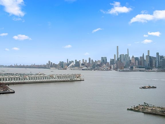 Live in luxury at the Hudson Tea Building in Hoboken with this stunning 2 bedroom, 2 bathroom, 1,350 sq. ft. north/west corner apartment featuring soaring 14-foot ceilings and expansive 10-foot windows that showcase breathtaking NYC skyline & Hudson River views. The open-concept layout includes a modern chef's kitchen with granite countertops & stainless steel appliances, a spacious primary suite with abundant closet space & en-suite bath, & generous second bedroom with an additional full bath & washer/dryer in the unit. Hudson Tea residents enjoy 24-hour concierge and doorman service, a state-of-the-art fitness center, a resident lounge, a business center, outdoor seating area with fire pit & a private shuttle to the PATH station. Located along Hoboken's scenic waterfront, you're just steps from many restaurants, parks, and shops, with easy access to ferries, buses, and the PATH train for a seamless Manhattan commute. Available June 1st.