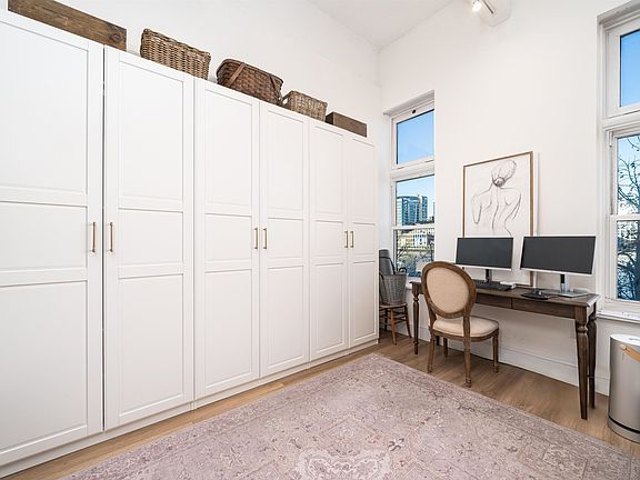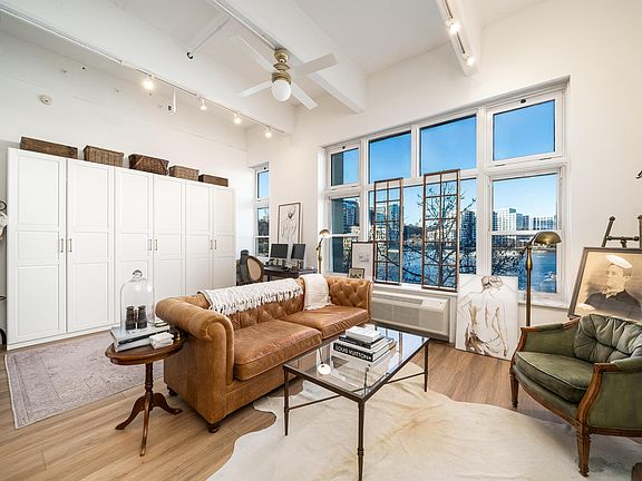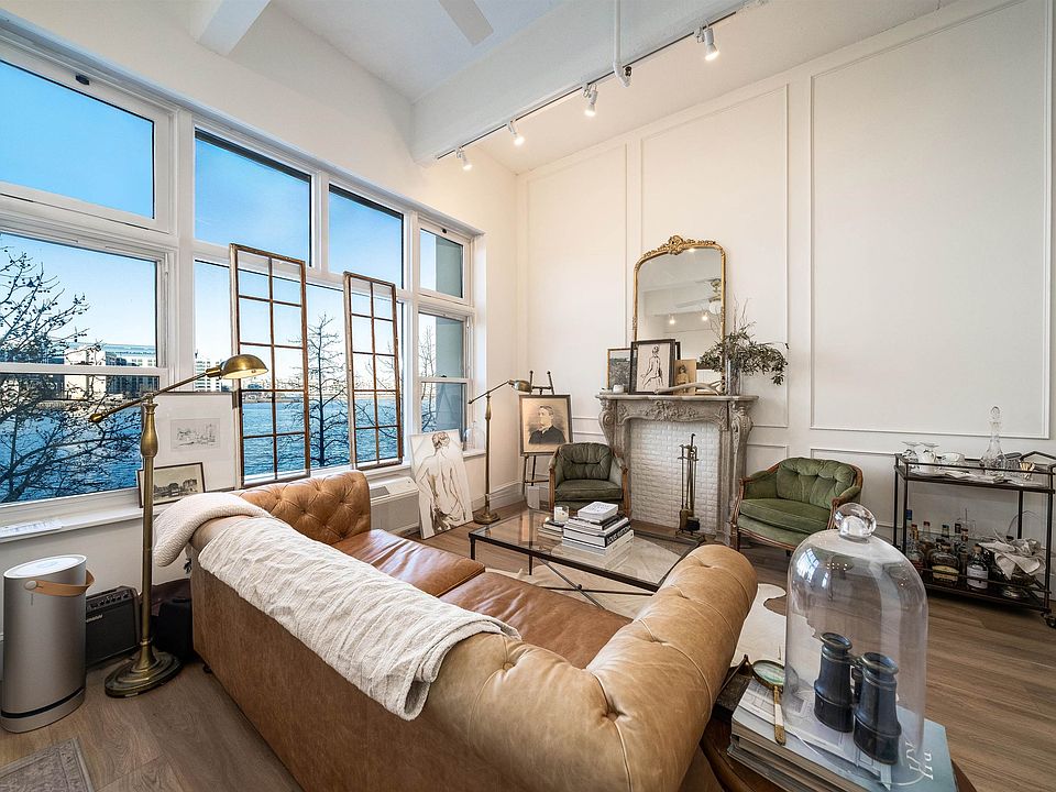 Tranquil and rarely available treelined waterfront views of the Uptown Hoboken Cove & Manhattan from your newly updated, spacious loft residence with private sleeping alcove. Your chef's kitchen is opened up into the dining & living room creating an open floor plan space with white Carrara Marble quartz extended countertops, subway tile backsplash, plentiful 42" white shaker style cabinetry w/upgraded hardware, wine fridge & all stainless steel appliance package. The spa-like boutique bath has been upgraded to include a new vanity, mirror and antique brass hardware. In the private sleeping alcove, modified sliding closet doors have been added to maximize spatial accessibility to easily allow for a king size bed & custom 92in wall units for additional storage and closet space. With 8" white oak wide plank luxe flooring throughout, custom full floor to ceiling picture frame wainscoting, built-in entryway discreet shoe storage, new lighting and fans, in-unit laundry, Residence 2G not only checks off the boxes, its truly an elevated living experience. Asking $50k extra for the very rarely available parking license in the Laz garage! The Hudson Tea's full-service amenities suite includes 24 hour concierge, nearly 3000 sqft gym with Pelotons, included fitness classes (adult & kids yoga, barre & HIIT classes), stunning residents lounge incl. private dining room with views of Midtown perfect for your next dinner party, new free WFH space, brand new kids redesigned playroom, 3 high-speed elevators, FREE shuttle to/from PATH, dry cleaner, & Choc O Pain French cafe onsite & common courtyard with fire pit & bike storage coming soon! Located directly on the Uptown Hudson River waterfront, with neighboring Harborside & Maxwell Parks, vibrant boutique shopping & incredible outdoor eateries, Soul Cycle, Pilates, Spas, Cork Wine shop, just 2 blocks to Direct 14th St Ferry to Midtown & WFC, few quick blocks from Trader Joe's, Whole Foods, farmer's market and Dumbo Grocery Market coming soon!