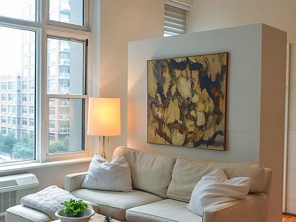 1500 Washington Street- the Hudson Tea- one of Hoboken's most sought after addresses. Unit 4T is extraordinary studio with a private sleeping alcove. Chef's kitchen features sleek modern cabinets, top of the line stainless steel appliances and granite countertops. Home appears so much bigger because of the vaulted 13' ceilings and 10' picture windows with Souther Exposure. Sleeping alcove is separated from the main living space by an extended wall that has a built-in closet for additional storage. Additional features include Hunter Douglas blinds, gleaming hardwood floors, built in media center, and in unit washer/ dryer. Hudson Tea is one of Hoboken's most sought after luxurious units that features a 24 hour concierge, 2500 SQFT fitness center with Peleton bikes, children's playroom, and community room. A commuter's dream with NJ Transit buses just one block away, NY Water Way just a few blocks away, or you can take the private shuttle to the Hoboken PATH. Food shopping is a breeze at Kings, Whole Foods, Trader Joes, and Urban Market (currently being built across the street). What else do you say? One parking spot is included in the sale.