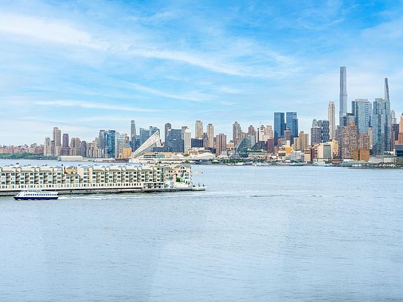 Retreat home to a quiet, sundrenched corner loft with 14 foot ceilings, perched high atop the esteemed enclave, the iconic Hudson Tea Building on the banks of the Hudson River with breathtaking views of the Manhattan skyline, NY harbor and the massive beauty of the Palisades Cliff from your plentiful walls of 10 foot picture windows outfitted with custom electric blinds throughout. This spacious and coveted "E Line" Residence boasts a split layout with proper entryway foyer, 2 bedrooms and 2 bathrooms and a very generous open kitchen, living room, & dining room with nearly 1400 sqft of usable space plus a designated office/working from home alcove. The open concept chef's kitchen, with its large center island with a sleek stainless french door fridge, dishwasher, cooktop & oven, undercounter microwave drawer, white quartz countertops, overhead lighting, and endless cabinets, perfect for the discerning home cook! The king sized primary suite is outfitted with 3 closets with custom organizers, a massive custom storage attic addition, privacy blinds, and a truly spa-like ensuite bath with glass enclosed oversized shower. The second bedroom also has plenty of room for a queen bed, a double custom closet, and large overhead storage loft. Rounding out this generously sized loft is full-sized, front loading laundry in-unit, built-in linen closet, coat closet, hardwood floors, ceiling fans, and lighting fixtures throughout & timeless, exposed industrial concrete beams. Covered parking space included at the 1450 Laz Garage conveniently located across the street! The Hudson Tea's full service luxe amenities include 24 hour highly skilled concierge service, nearly 3000 sqft gym with fitness classes (adult & kids yoga, barre & HIIT classes, offered in person!), kids redesigned playroom coming soon & redesigned, Brand new, resident lounge with fireplace, wet bar & dining room, 3 modernized high-speed elevators, FREE shuttle to and from PATH, dry cleaner, & Choc O Pain French cafe' onsite! Brand New shared WFH space coming soon! Located directly on the Uptown Hudson River waterfront promenade to pop outside for a stroll or bike ride, vibrant boutique shopping & bars, Cork Wine & Cheese shop, Daybase, Soul Cycle, Club Pilates, & outdoor eateries, Direct Ferry from 14th St. to Midtown & WFC, 126 Bus to Port Authority, Trader Joe's, Whole Foods, Uptown farmer's market and so much more!