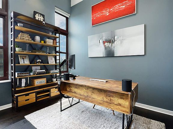Welcome home to this bright sun-soaked South exposure, stunningly updated and upgraded sought after A-line (1BR + Den/Nursery) Hudson Tea home. The efficient layout provides an ensuite master, a bright airy den/nursery, plus a bonus space for an office, two full baths, and is complimented by soaring 14' industrial style loft-like ceilings, and wood floors throughout. The custom open concept kitchen is like no other with gorgeous "super white" granite, stainless appliances, a farm-house style sink accented by a designer inspired herringbone pattern full backsplash. The bathrooms feature Restoration Hardware vanities, Porcelanosa fixtures, and the master shower is large enough for a bench and features a foot rest for shaving. Bedroom closets are fitted with California Closet systems to maximize storage. In home laundry is upgraded with full sized Samsung washer and dryer with steam feature. You'll enjoy an expanded view down Washington Street thru massive windows. Other community lifestyle features included are a parking space, concierge, 2500sf fitness room, residents lounge, children's play area, shuttle to PATH and is located near buses and the ferry.